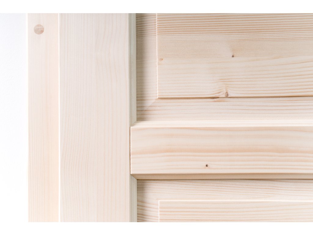 Materiál: smrk z moravských lesů, přírodní masiv - není použito napojované spárovky, systému minicink apod. (žádné viditelné zuby a vlny).